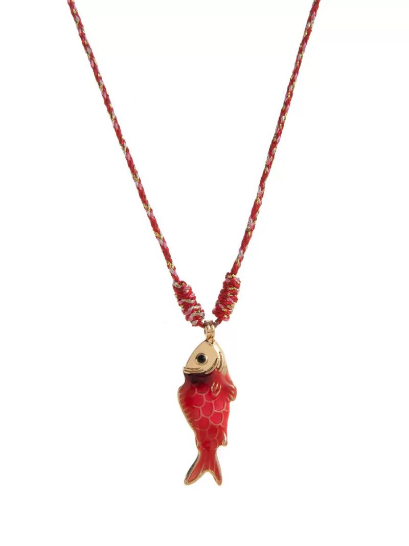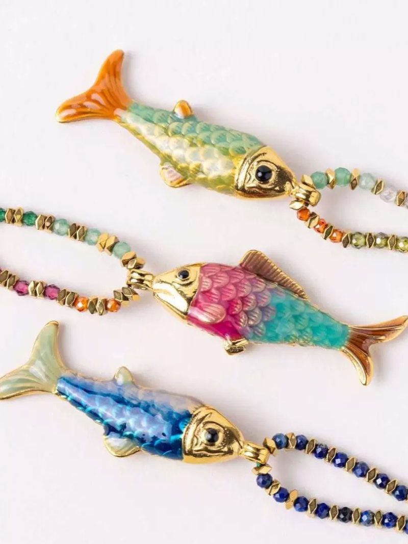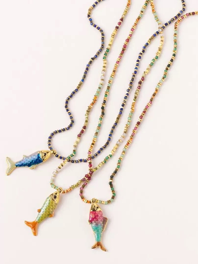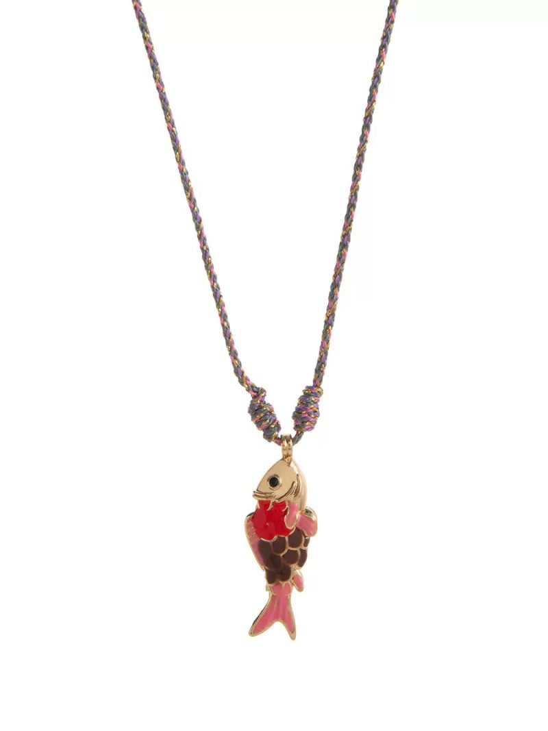 A minimal rope necklace featuring a colorful fish pendant inspired by ocean life.