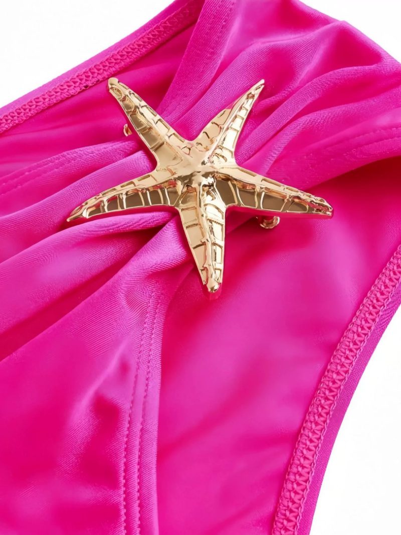 The coordinating bikini bottom is designed with a flattering high-cut silhouette and finished with a matching gold starfish accent for a cohesive, luxurious touch.