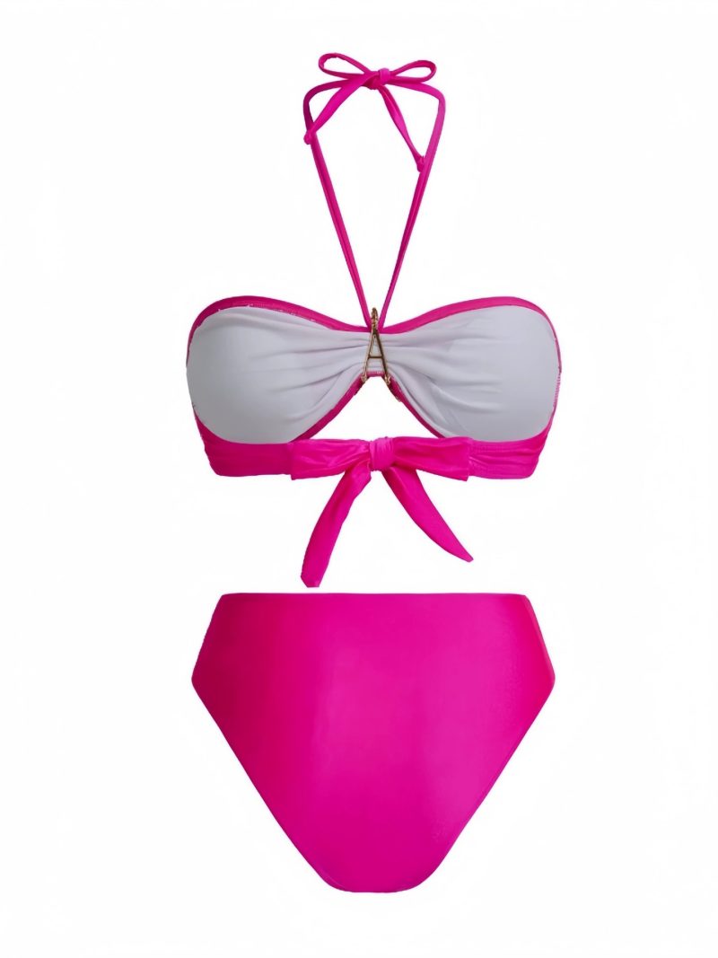 Vibrant, playful, and irresistibly glamorous, this fuchsia bikini set captures the spirit of sun-soaked Mediterranean summers. The striking bandeau-style top features a gold starfish centerpiece that evokes seaside treasures, while the halter tie adds elegance and adjustable support.
