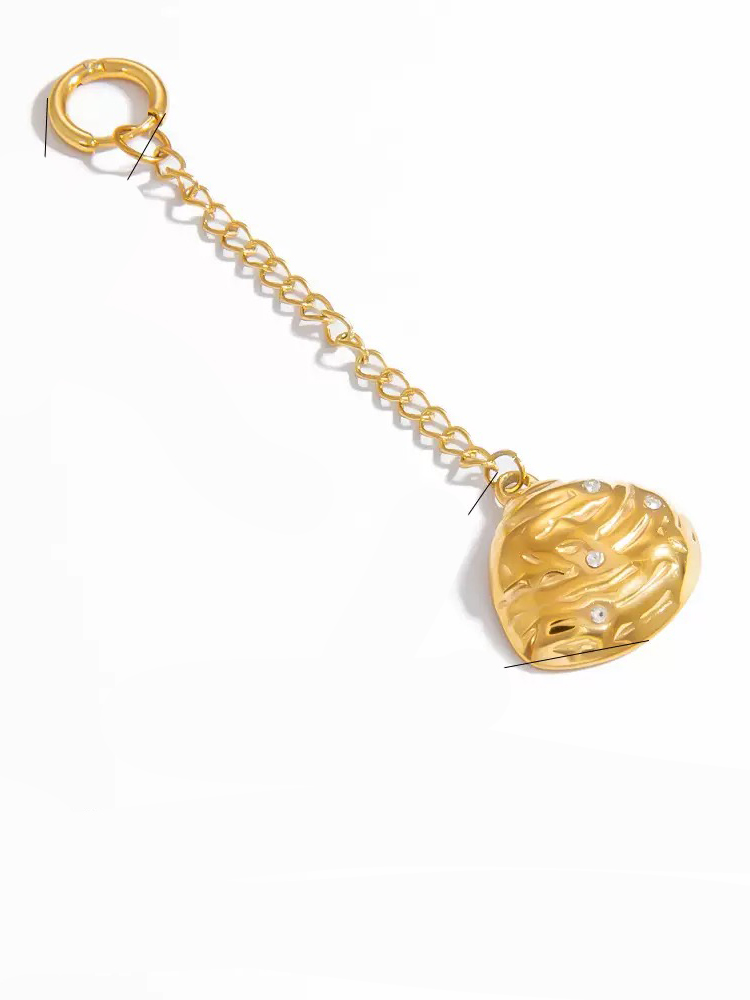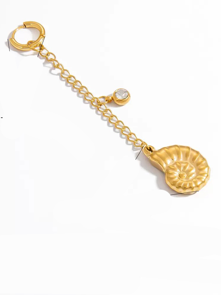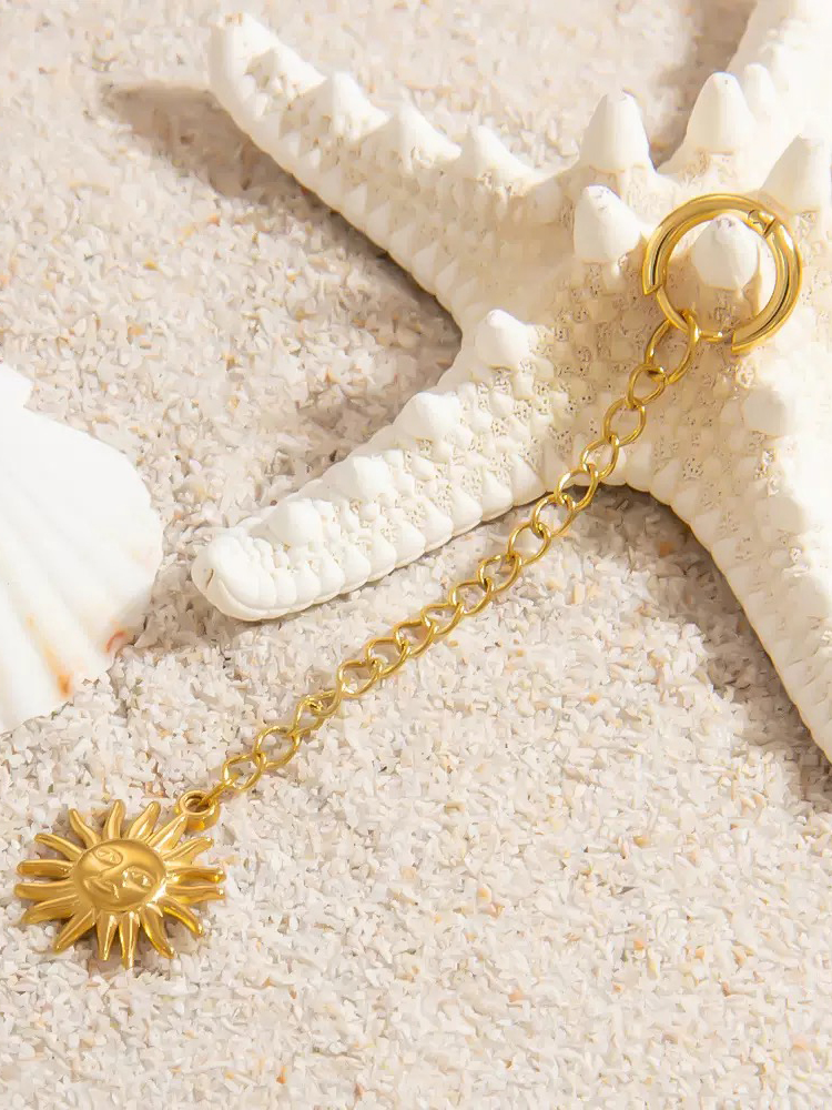 A delicate gold-tone bikini clip with hanging charms for a refined beach look.