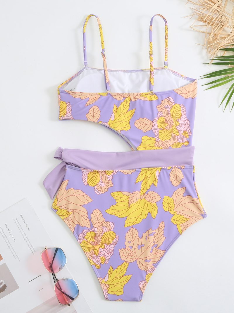 The Lilac Bloom Cut-Out Swimsuit Set is designed for effortless summer elegance.