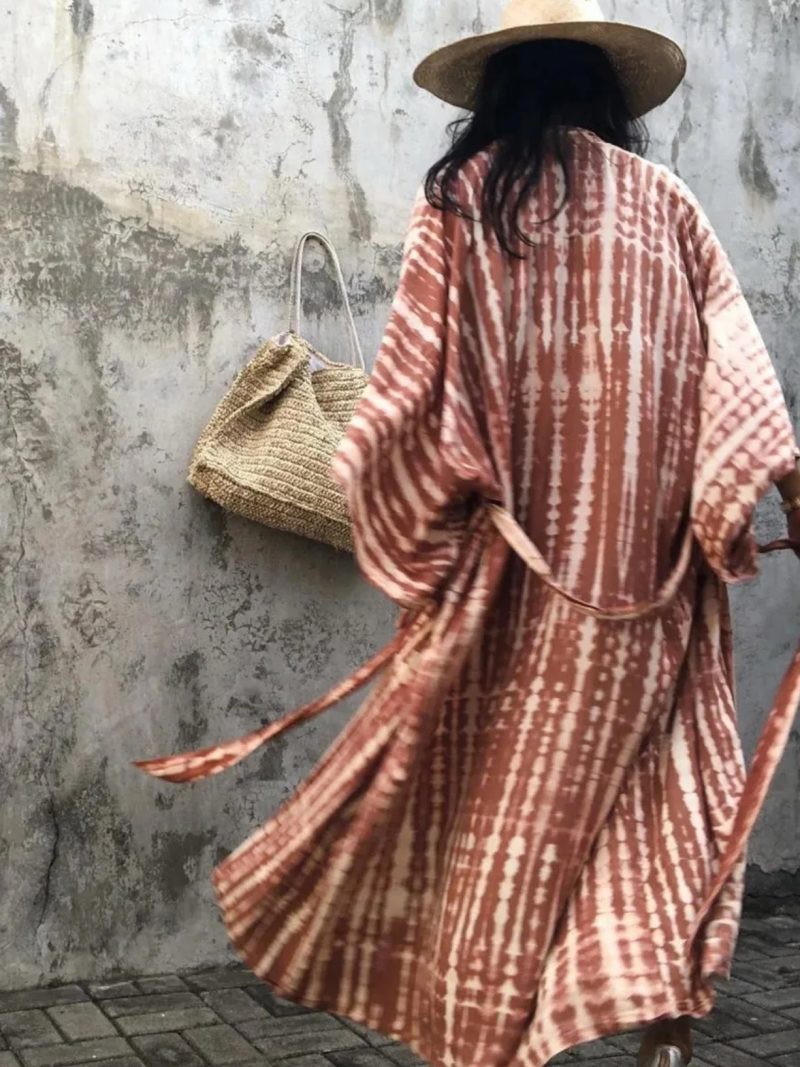 The MAREA Pink Beige Tie-Dye Kimono captures the essence of soft coastal elegance. Designed in a delicate blend of warm pink and beige tones, this piece brings a calm, sun-kissed aesthetic to your beach wardrobe.