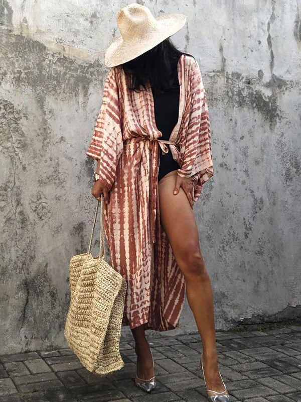 Crafted from lightweight, breathable fabric, it drapes effortlessly over the body, creating a fluid and relaxed silhouette. The open-front design and wide sleeves enhance its airy feel, making it perfect for layering over swimwear or styling with casual day looks.