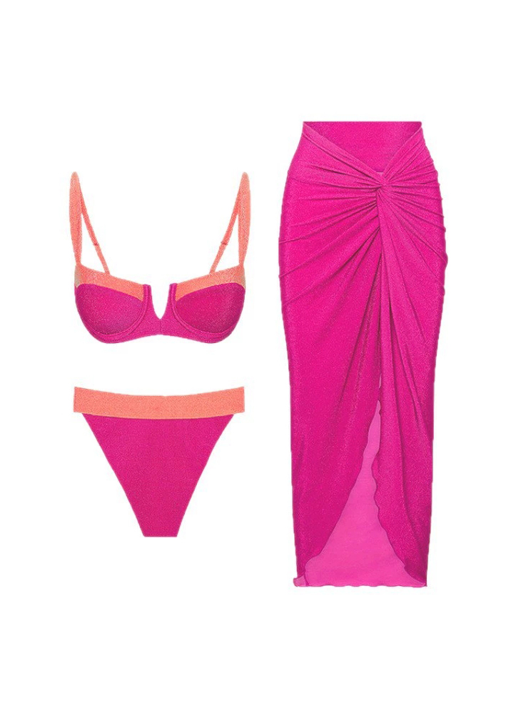The vivid fuchsia tone captures the energy of summer sunsets and glowing resort nights. Clean lines and sculpted shaping create a confident, flattering fit that feels both glamorous and modern.