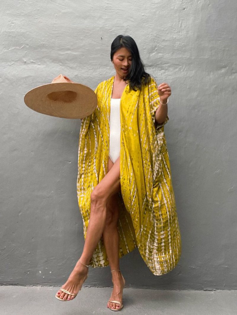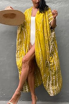 Flowing yellow tie-dye kimono with a relaxed silhouette, designed for effortless beach and resort layering.